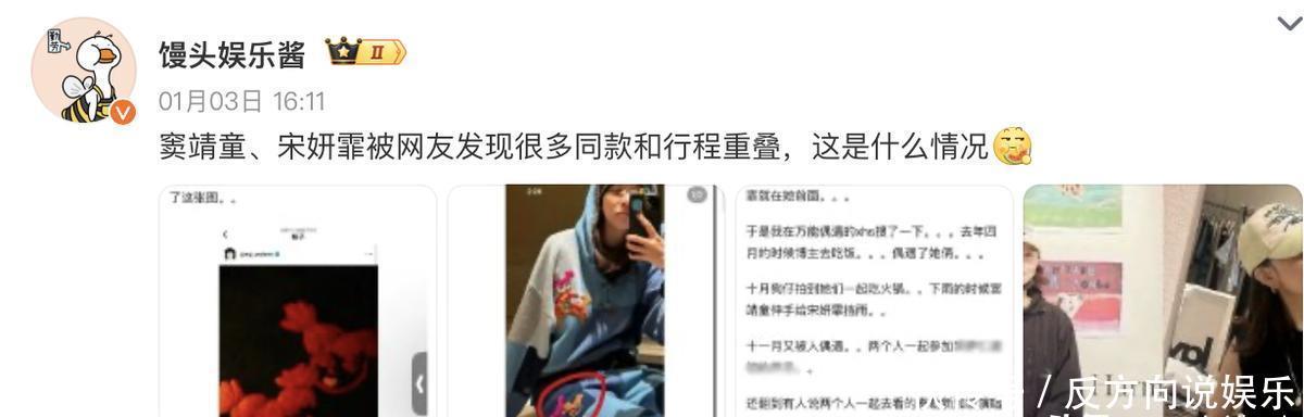 尽管如此,但不少眼尖的网友还是从二人的互动中发现了一些蛛丝马迹,2024年元旦,宋妍霏在个人社交媒体上发了两个“针织小女孩”的表情,一时间让人完全摸不着头脑。但就在当日几个小时后,窦靖童发布了一张个人自拍,而其穿的上衣赫然有着两个针织小女孩的刺绣。这下网友们算是彻底炸了锅,纷纷跑去评论区留言,可能是怕动静闹得太大,亦或是不堪其扰,窦靖童第二天便删除了这条自拍动态。